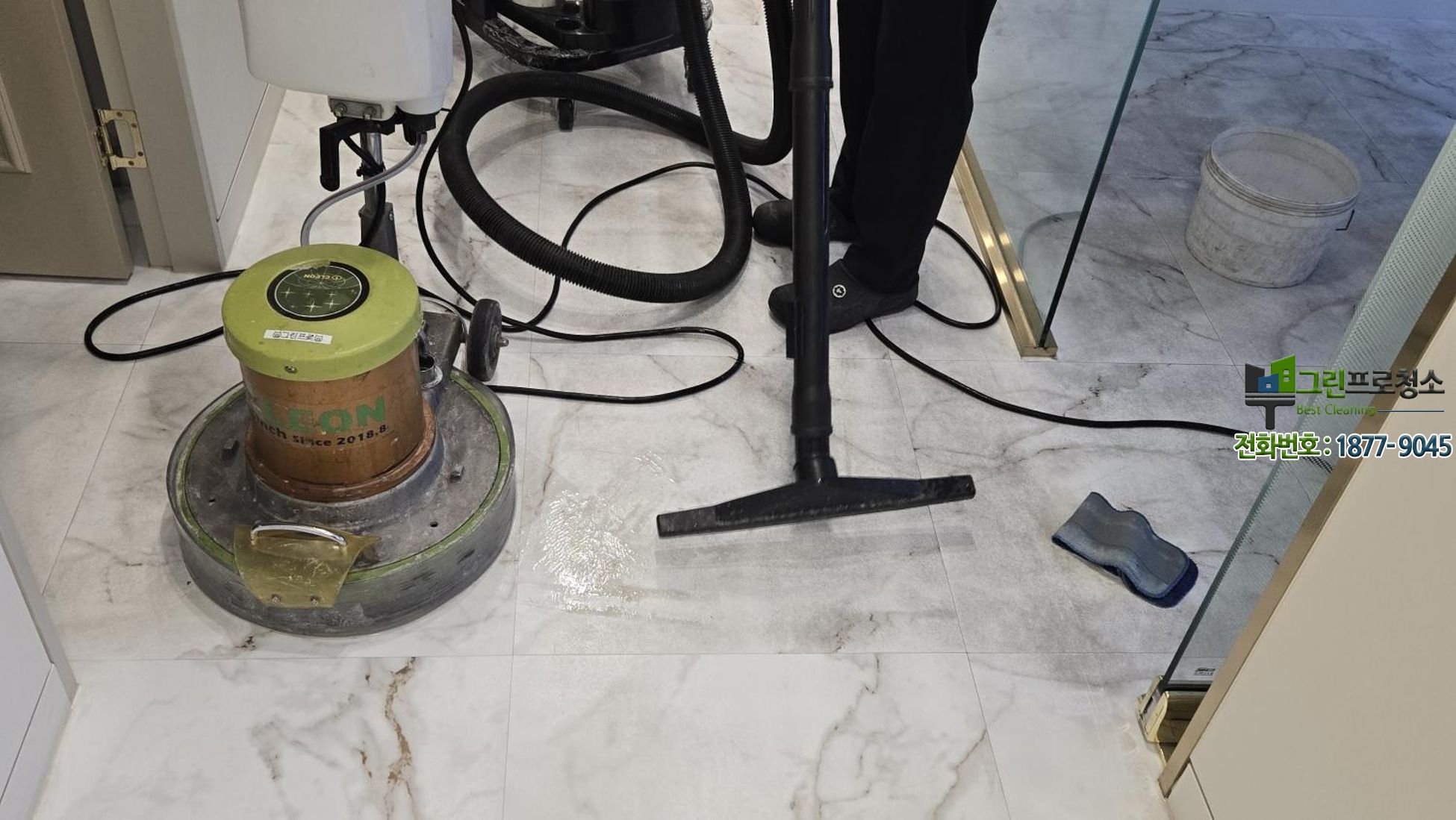 병원 타일 바닥청소에서 사용되는 전문 장비
