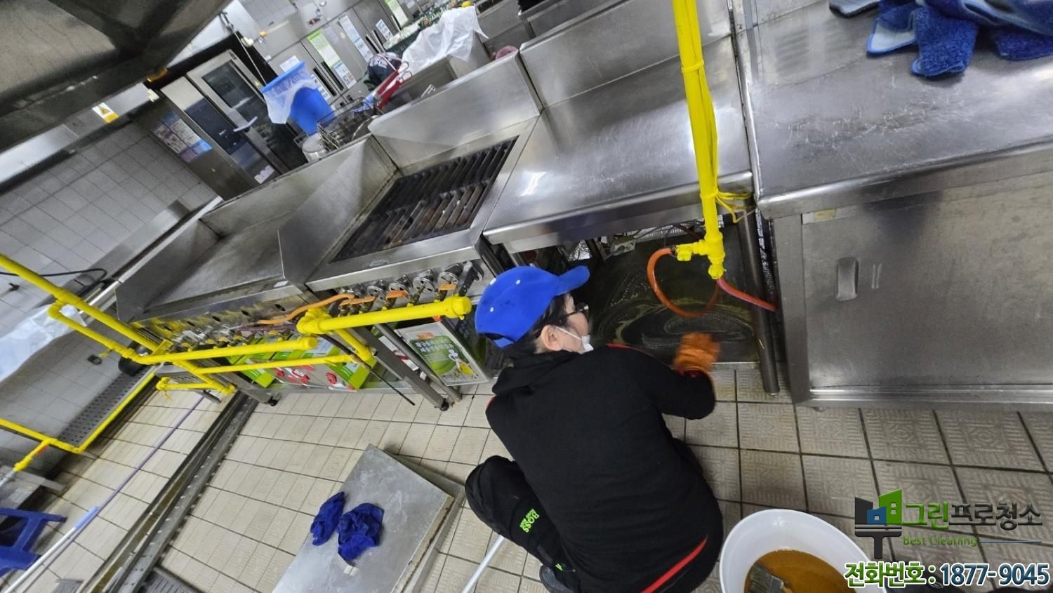 그린프로청소의 오픈주방 기름때 제거 청소 특징