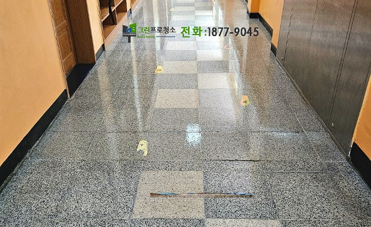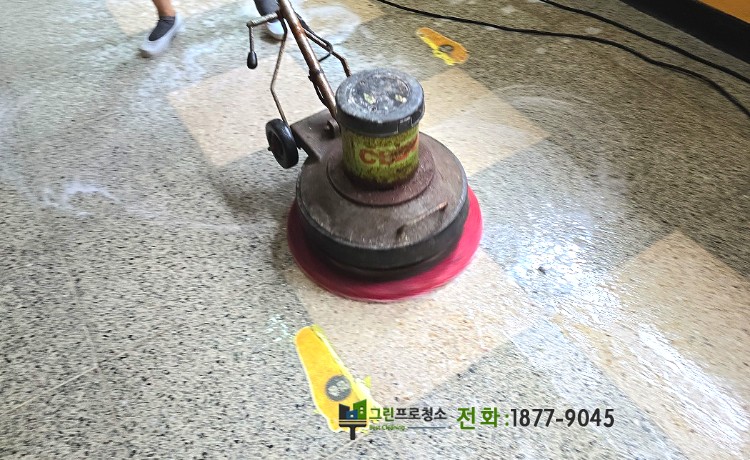 테라조 타일은 내구성이 뛰어나고 미적인 아름다움을 갖춘 바닥재로, 상업용 건물, 공공 장소, 고급 주택 등에서 널리 사용됩니다. 그러나 시간이 지나면 발자국, 오염물, 마모 등으로 인해 타일의 광택이 떨어지고 표면이 거칠어질 수 있습니다. 이를 방지하고 타일의 아름다움과 내구성을 유지하기 위해서는 정기적인 왁싱 작업이 필요합니다. 왁싱은 테라조 타일의 표면을 보호하고, 광택을 회복시켜 오랜 기간 깨끗한 상태를 유지하는 데 도움이 됩니다. 아래는 테라조 타일의 왁싱 과정에 대한 설명입니다.